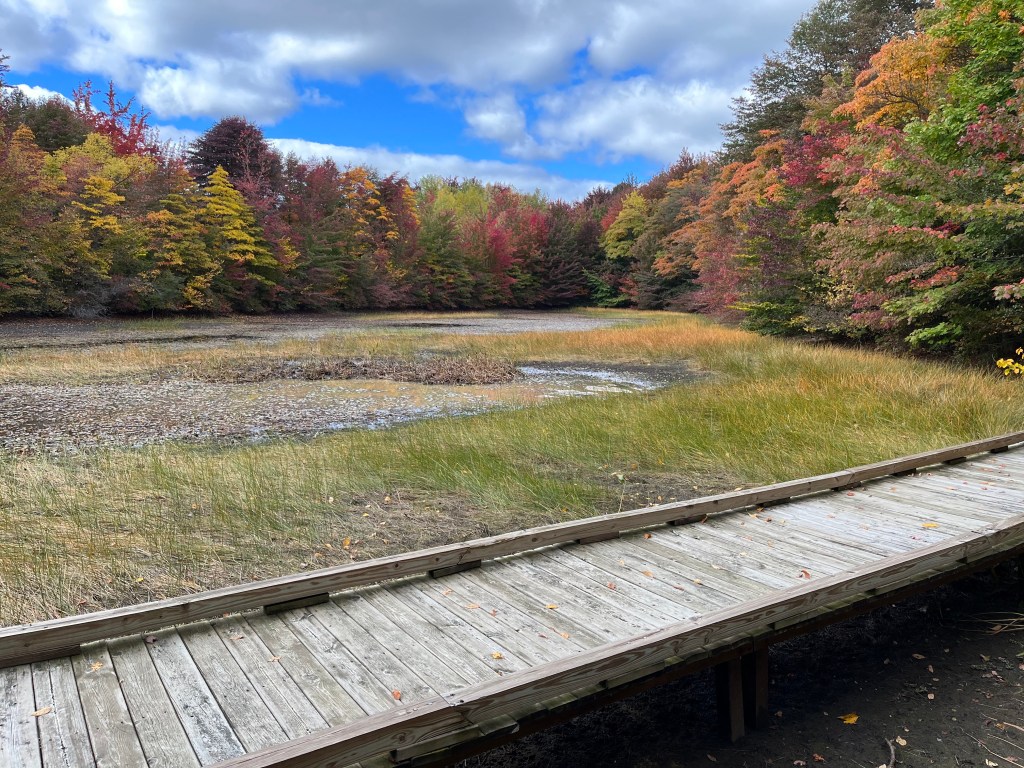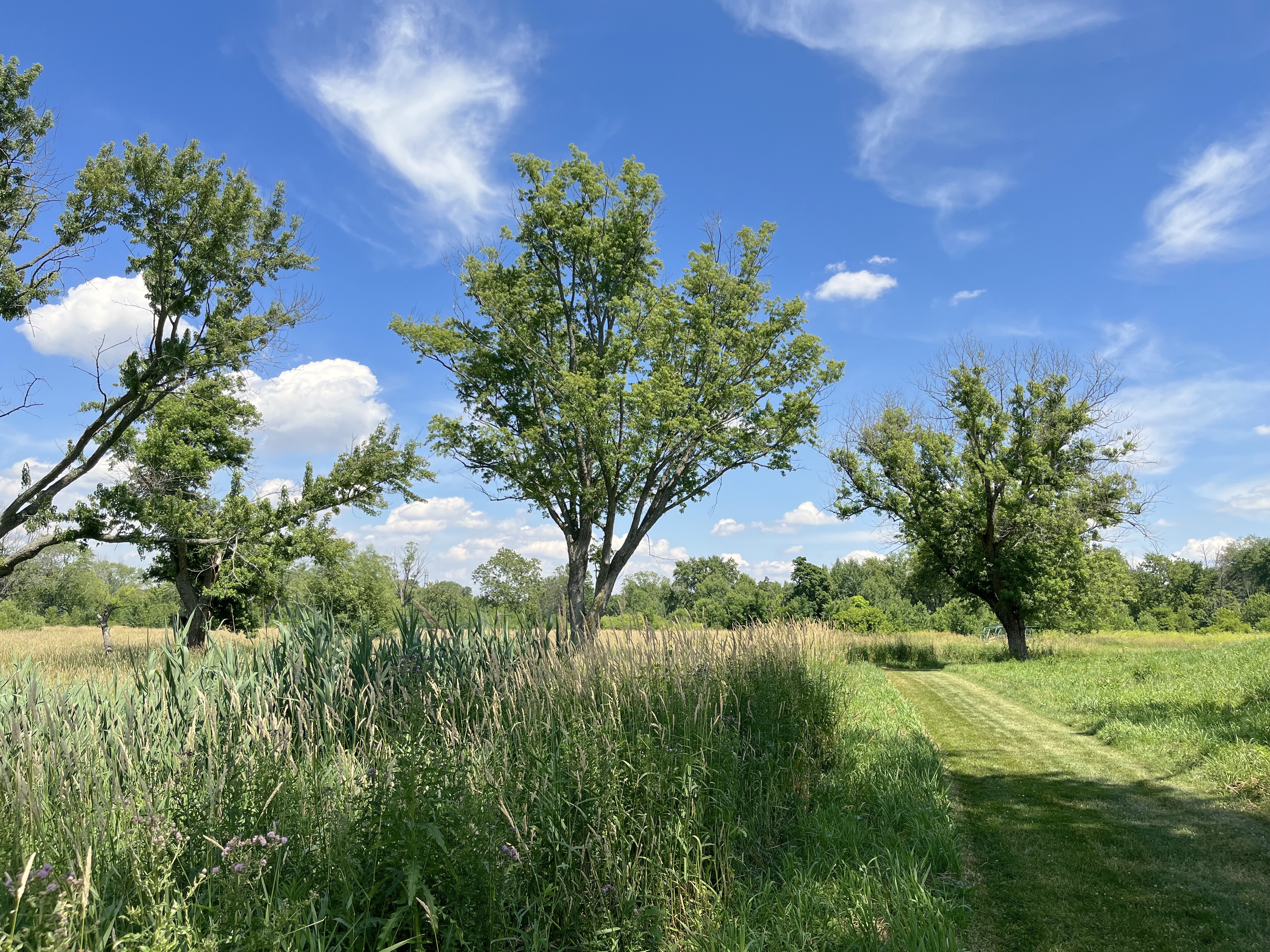 A smiling woman jogs with her English Springer. Kayaking fishermen silently skim the river. A future Eagle Scout clears a new trail spur. Two artists capture wildflowers at the woods’ edge.